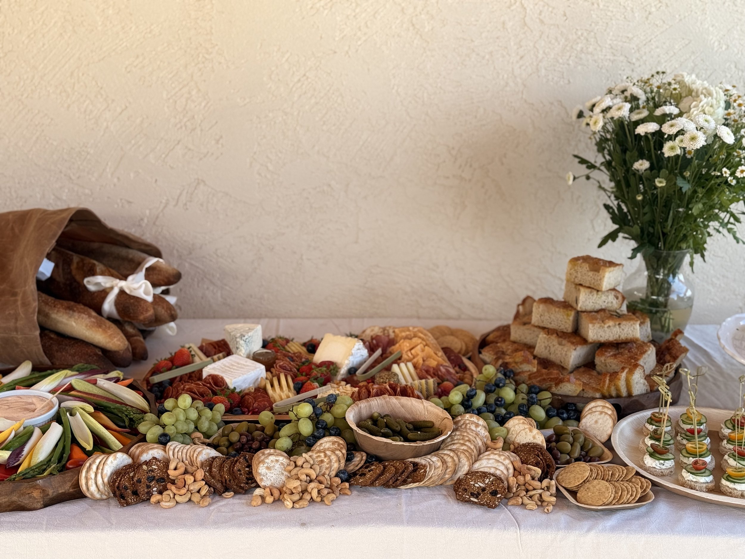 OUR GRAZING TRAYS AND TABLES INCORPORATE LOCAL + NITRATE FREE CHARCUTERIES, ORGANIC AND IMPORTED RAW CHEESES, FRESH CRUDITÉS WITH DIPS AND SEASONAL FRUITS. INCLUDES OLIVES, PICKLES, CRACKERS, JAMS AND HOUSE MADE FOCACCIA AND FRESH BAKED COOKIES.
