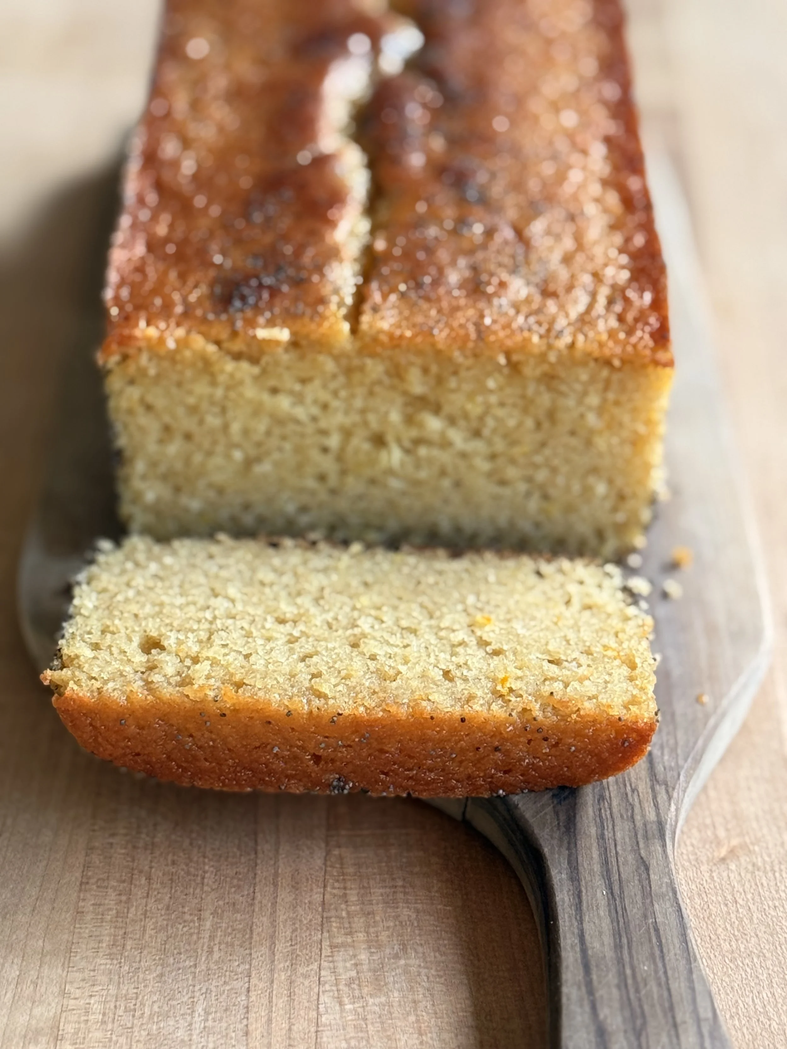 Finish: Let the cake cool in the pan for 10 minutes, then remove to a wire rack set over a sheet pan. While still warm, gently pour the orange soak over the loaf, letting it absorb.